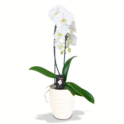 Known for its exotic allure and enchanting beauty, this cascading white orchid plant is a timeless classic that will complement any decor and bring a touch of sophistication to any room. Its cascading tendrils and pristine white flowers create a sense of tranquility and calm, making it the perfect addition to any space. Surprise a loved one with this elegant and majestic orchid plant. It's a gift that keeps on giving as it continues to bloom and bring joy long after it's received. So go ahead, add a touch of grace and beauty to your life with this cascading white orchid plant.